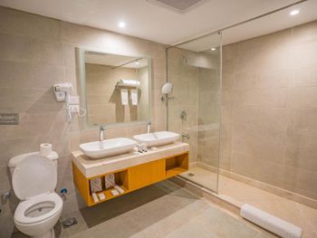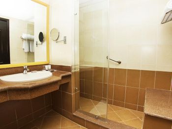 2. Номера. Это номера не 5-звездочного отеля. В ванной комнате у нас не работал замок в двери. В ванной комнате на стенах и потолку развивается плесень. Помещения устали и хотят обновления.
