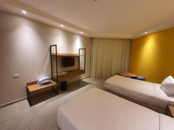 4. Обслуживание. При заселении дали номер с двумя раздельными кроватями, вместо одной большой. Попросили пересилить. Сказали, что номеров нет других, поэтому нам просто их объединили. По итогу розетки, которые были между кроватями, оказались под подушками за головами. Свет включался при любом поворачивании во время сна.