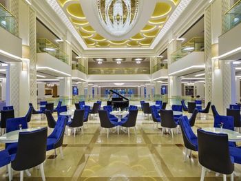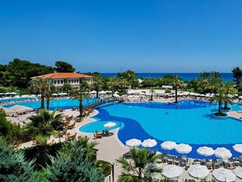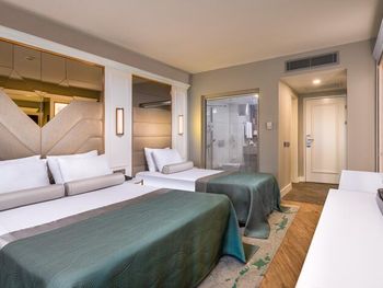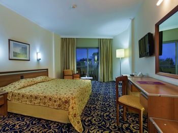 Мы отдыхали с 4 сентября.Погода была отличная.Персонал был очень приветливый.В ресторане,во время еды,всегда подходили и спрашивали какие напитки мы хотим или что мы хотим пить,не было не разу чтобы мы сели и они не подходили,всегда подходили и спрашивали,и быстро приносили.Но один минус,стаканы частенько бывали не очень чистыми,что нам не очень понравилось.Еда была в большом ассортименте,но немного однообразная,почти в каждый день повторялась,но тем не менее было из чего выбрать покушать.Еда была вкусной.Сдадости тоже были в большом ассортименте.В ресторане было достаточно мест,и даже в час пик,мы могли найти,стол где сесть поесть.Очень понравилось что столы были постоянно чистые,всегда после каждого человека, официанты подходили средством вытирали столы и меняли на чистые скатерти, и тебе приятно было кушать за таким столиком.Очень красивая территория и очень большая,и очень ухоженная.На територии есть ещё снек бары и лобби бары, и на пляже тоже есть снек бар.На пляже тоже есть достаточно лежаков,потому что там тоже большой пляж и всем хватает.Днем есть разные развлечения,вечером анимация для детей,потом представления для взрослых,после дискотека для взрослых до 24:00.Еще на территории есть аквапарк.Там тоже есть снек бар. В номере чисто,предлагали в каждый день уборку,но как мы очень соблюдали чистоту,нам она часто не требовалась.Полотенце по просьбе меняли,и давали туалетную бумагу.к персоналу который убирает,нет никаких претензий.Женщина, которая убирала наш номер,была очень приветливая.Но, есть просьба,по поводу именно одеял,их нужно некоторые уже постирать.У нас было 4 кровати,3 одеяло были чистые,а одно было немного грязноватое.А так все остальное понравилось,все вроде бы было чисто.Плохо закрывалось дверь в ванной,но если прихлопнуть ее,то закрывалось.Все остальное понравилось.Через каждые 2 дня, женщина играет на фортепиано,очень красиво.Очень огромный холл,с диванами на которых можно днём расслабиться и отдохнуть.