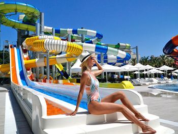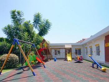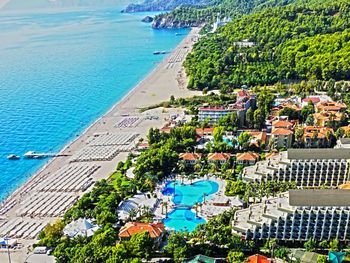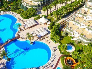 Место сравнительно нежаркое для Турции из-за близости гор, много зелени вокруг. Много горок в аквапарке, правда, правила посещения их размыты и толкование зависит от того кто именно в этот день там дежурит из персонала.