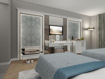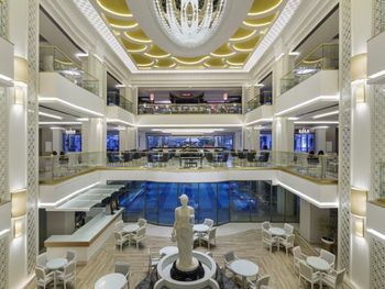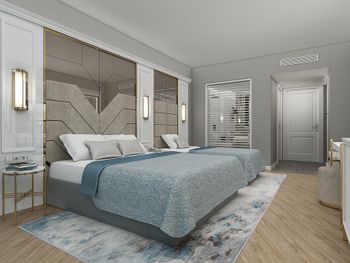 В номерах с видом на кафе и фонтаны очень шумно вечером и ночью. Думаю, ресепшн должен стараться не заселять людей с маленькими детьми на эту сторону.