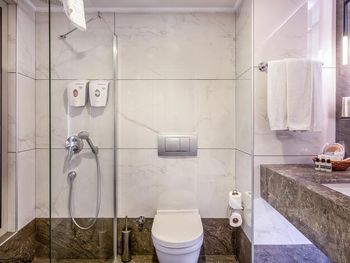 Чисто, халаты, тапочки, все необходимое для ванной. Приветствие от отеля: корзина фруктов и вино. Мини бар включён, пополняют регулярно.