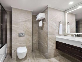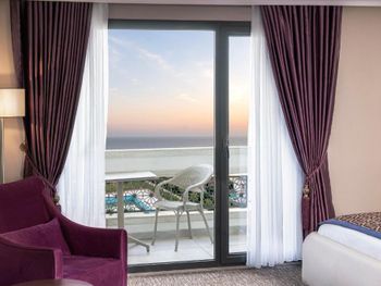 Останавливались в отеле в июле 2024. Планировали во время отдыха попутешествовать по Стамбулу. Всё очень понравилось. До Стамбула на машине добираться удобно. Сам отель новый, все чисто, красиво. Наш номер был с видом на море - и это шикарно! Учитывая, что это северная сторона, на балконе никогда не было пекла. Завтраки хорошие. Много овощей, фруктов, сыра, выпечки, яйца, омлеты разных видов, блинчики с различными топингами, национальные сладости. Из мясных блюд только колбасно-сосисочные изделия. Отличные бассейны на территории. Место достаточно всем и для детей и для взрослых, никогда не было очереди на лежаки и под зонтики. Весёлые водные горки доставили отдельное удовольствие. Море недалеко, минут 10 ходьбы от отеля. Море чистое, метров 50 от пляжа мелкое, поэтому удобно с маленьким ребёнком поплавать. Сам пляж оборудован " условно". Чисто, есть лежаки, но такое чувство, что ими никто не пользуется. Окунулись - и в отель вернулись. Понравился массаж в СПА. Муж особенно хотел отметить мастера по массажу по имени Sami. По его словам, такого отличного массажа он никогда не получал ранее.