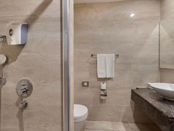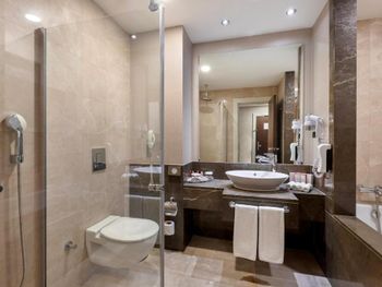 Отель марально устаревший. У меня был делюкс на верхнем этаже. Хороший вид, удобная кровать, но Всего две розетки на весь номер. Одна в ванной и одна в номере. Вв можете включить либо чайник, либо настольную лампу, либо ваш девайс в зарядку. Все вместе вообще ни как. Ужасно темный свет. Вечером ощущение что просто горит ночник. В пододеяльних заправлено вафельное летнее одеяло. В подушка сбитый в комки наполнитель. Завтрак. На первый вид разнообразен но только на первый взгляд. 1. Большой выбор сыров и колбас, но все они не вкусные Абсолютно отвратительный иенемен и оллет похожий на кашу. Отдельно жарят яйца, но с ПОЛОВНИКОМ масла. Нет рыбы, нет мяса кроме невкусных колбас. Отвратительный кофе из кофемашин, которые вероятно не чистят. Фильтр кофе приемлемый. Во всем отеле нет рожковой кофе машины, ни в ресторане, ни в баре. Хамам только платный. То есть сауна не включена в проживание. Нет халатов. Через раз забывали класть полотенце для ног По факту сервис не соответсвует 5*