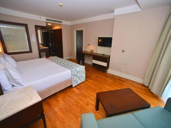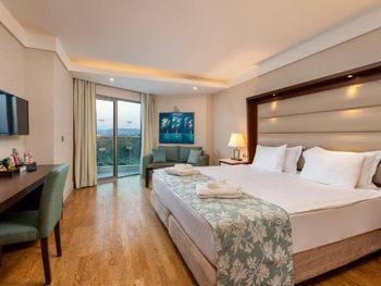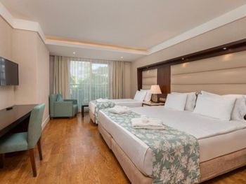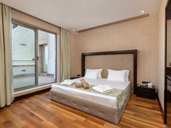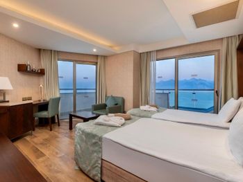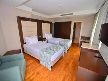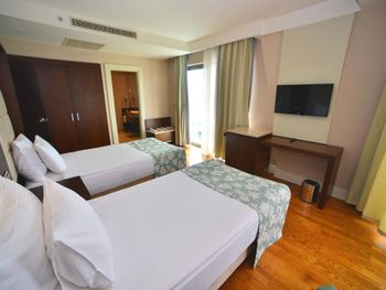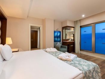 Заказан был номер с боковым видом а море, менеджер решил нам улучшить номер и предоставил в прямым видом на море, НО номер был трехместным и для третьей кровати еще комната, а само помещение ,где стояла 2-х спальная кровать в итоге существенно меньше по площади. Зачем такой номер для двоих? Не стали менять, так как всего 2 ночи там останавливались. Вроде бы улучшение номера, а по итогу совсем не то. Удобно расположен - до старого города пешком рядом. Есть и хамам и турецкая баня, бассейн крытый, работает до 20.30