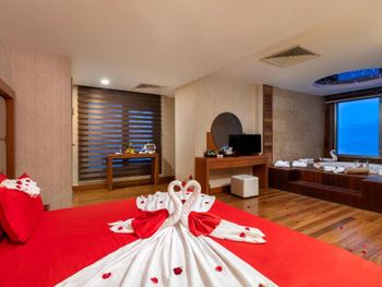 Не первый раз в этом отеле. Я отдыхала раз 10 в этом отеле, если не больше. Предыдущий раз я уже столкнулась с их отношением. мы поменяли номер в отеле, так как не работал кондиционер. И у нас в холодильнике была бутылка нашего шампанского Мондоро. Который нам пол дня не могли вернуть. Они приносили нам бутылку, но совершенно не нашу, а какой то турецкий шарап)))) Мы им говорим, это же не наше. верните нам наше. Но видимо уже кто то унес домой)))) К вечеру было вернуто наше шампанское. Не очень серьезно для такого отеля, чтобы сотрудники унесли нашу вешь. Но в последней поездке, они вообще удивили. Так как я не в первые в этом отеле, я знаю что у них есть доп. корпус ЭКОНОМ номеров, и я никогда не бронирую их, там очень сыро и темно. Я забронировала номер Делюк, как обычно. А по приезду, мы не смогли дказать что мы не бронировали эконом. У нас написано Делюкс. Они говорят, это Делюкс такой в доп здании. И они потребовали немаленькую доплату за переселение. Дело не в доплате, а в каком то их свинском отношении к людям, которые не в первые к вам едут. Очень разочаровал этот отель! Не рекомендую за эти деньги отдыхать с таким отношением.