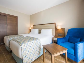 Начнем с того, что это не 5*. В пятизвездном отеле не может быть такого сервиса. Точнее его отсутствия. Начнем с уборки. Я бы сказала что её нет. Пришли, заправили кровать, поменяли полотенца, поставили воду, убрали мусор — всё. 1. Мыло в дозатор не налили ни разу за все время пребывания, хотя мы об этом просили позвонив на ресепшен. 2. Полы отвратительно грязные. Этого не видно если просто смотреть на плитку, так как она такого цвета что непонятно пол чистый или нет. Но у нас маленький ребёнок который ползает полу. Так вот одежду после того как он поползал можно было просто выкидывать, руки и колени тоже все чёрные — потрясающе. 3. Стаканы которые имелись в номере также никто не мыл. Их просто переставляли грязные с балкона в номер. 4. Пододеяльник семейного размера, но одеяло в него заправлено полутора спальное 5. Нас было двое взрослых и ребёнок. Клали всегда только два полотенца. Извините, а ребёнок не должен вытираться после душа? 6. Мусор выставленный за дверь номера лежал сутки. Такой отвратительной уборки я не встречала нигде! При этом мелочь, лежащую на столике забирали постоянно, хотя это не являлось чаевыми. Еда. Удивительно, но в трехзвездочном отеле выбор на шведском столе был гораздо шире. Еда однообразная и невкусная. Скумбрия в огромном куске хлеба — это что вообще? Донер это высушенные куски мяса в лепешке и всё. Клубники не было ни разу. Завтраки более менее. Но за 250 евро в сутки не было даже апельсинового свежевыжатого сока, только за деньги. Официанты медлительные и нерасторопные, могут смотреть что ты ждешь чтобы убрали стол, чтобы сесть за него — но при этом будут заниматься другими вещами. Сами практически никогда не подходят, приходилось звать. В итоге заплатив за AI (а другого типа питания на букинге не предлагалось), мы ужинали в городе в ресторанах, так как не хотелось портить себе отдых невкусной и однообразной едой с посредственным сервисом. У бассейна напитки наливают в мягкие пластиковые стаканчики а-ля для пива в уличной палатке.