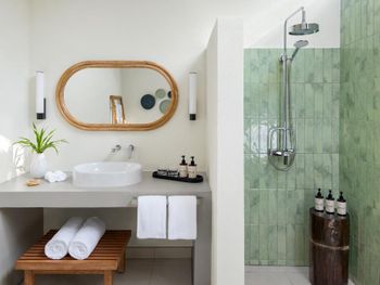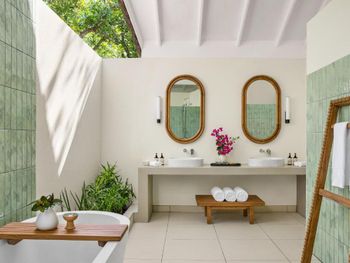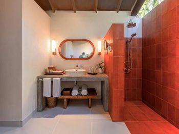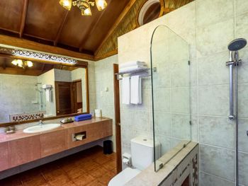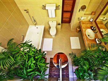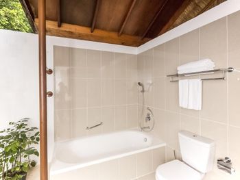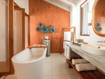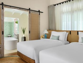 Брали пляжную виллу - в 10 метрах от пляжа, с своими качелями- основной номерной фонд отеля. Достаточно неплохо, приятная спальня на 3-4 человека, чистая просторная ванная, горячая-холодная вода. Почти все что нужно.