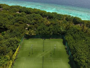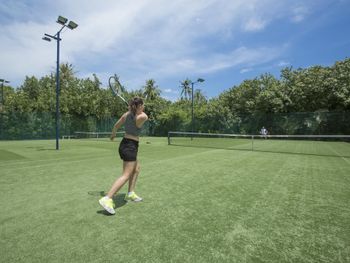 - Продуманная и ухоженная территория острова, которую дополнительно озеленили. В центре острова свой сад. Несмотря на небольшую площадь, на острове расположились открытый теннисный корт, спорткомплекс с двумя закрытыми волейбольными площадками и тренажёрным залом, спа, дайвинг-центр и центр водных видов спорта, магазинчики, включая ювелирный, множество ресторанов и баров, зоны отдыха с качелями. Как пляжи, так и внутренние тропинки старательно чистят.