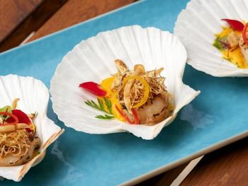 вкусная еда в ресторане на воде
