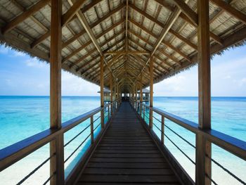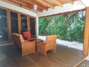 - Сдвоенные номера. Как виллы над водой, так и пляжные бунгало - это два номера в одном строении. Мы отдыхали в вилле над водой. Террасу приходилось делить с соседями, от них нас отделяла лишь деревянная перегородка, которая местами прохудилась. Звукоизоляции нет, соседей слышно. Такая проектировка номеров не обеспечивает изоляцию и уединение, за которыми многие и летят отдыхать на Мальдивы. При этом в данном ценовом диапазоне можно найти сопоставимые отели с изолированными номерами.