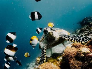 Волшебный риф, очень много разных рыб и животных: черепахи, рифовые акулы, осьминоги.
