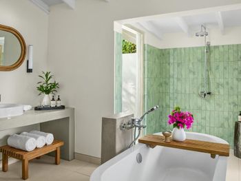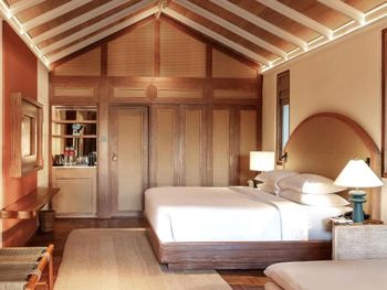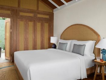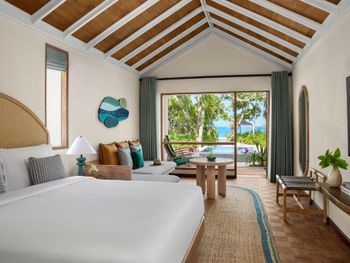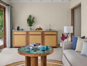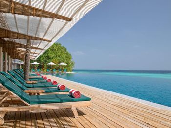 There is abandoned space around the water villas, the bar at the aisle to the villas does not work, the same with the pool bar, the shore is unenhanced with rubbish heaps and old sun loungers and umbrellas lying around. The beach is poor compared to the beach at the deluxe villas. The room was cleaned only 1 time in 4 days of stay! In the evening before leaving, they promised to bring information to the room about the time and organization of the transfer - they did not bring it, we had to go to the reception ourselves.