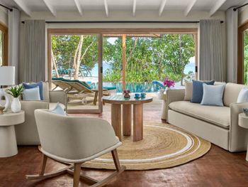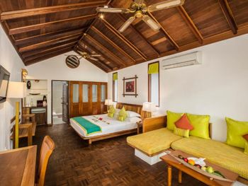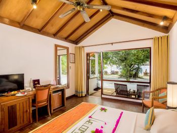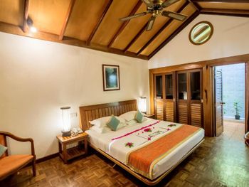 Жили вчетвером в семейном номере ….(сдвоенный домик: два отдельных входа, две ванные, номера соединены дверью). Считаю, что у этого конкретного домика лучшее местоположение из всех: самый тихий уголок пляжа; более густая растительность, которая скрывает от глаз соседей. Единственный нюанс - он дальше от ресторана, но учитывая общую площадь острова это не кажется проблемой, с удовольствием гуляли.