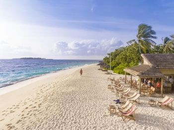 Остров- отель. Небольшой островок, 10 минут из конца в конец по самому длинному маршруту. Живописная природа, отличный пляж- почти все пляжные виллы имеют доступ к шикарному пляжу. Отсутствие волнорезов в воде почти на всем острове- залог шикарных фото без потусторонних "каменных гряд" в лазурном море. Хорошая организация трансфера- ни минуты задержки в обе стороны. Кто впервые летит на Мальдивы- не пожалейте лишние 200 баксов и закажите трансфер на гидроплане, оно того стоит.