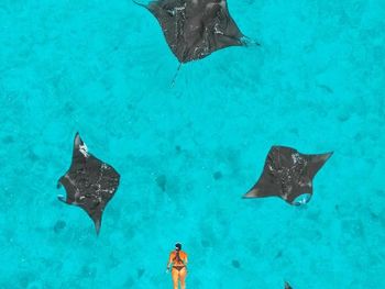 вечером к 6 часам в районе драйв центра приплывают скаты и рифовые акулы, летом говорят проплывают манты