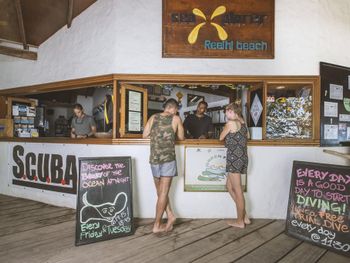 Очень красивый риф, недорогой и классный выездной сноркелинг , плавали с мантами, кому-то посчастливилось встретить китовую акулу, выезд к черепахам тоже интересный. дайвинг на домашнем рифе неинтересный, либо мне не повезло со временем и все животные спали или просто уплыли))) если имеете сертификат Padi , то будет интересней. мурены, черепахи, лобстеры, акулы, облака мелких рыб- все есть на домашнем рифе и видно просто сноркая , классные ребята в дайвинг центре