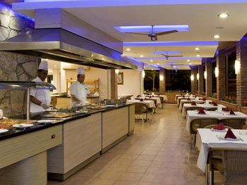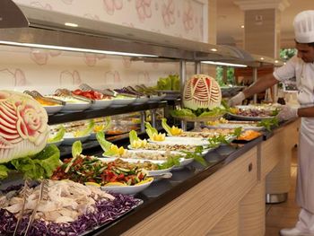Еда, которую предлагает отель, совсем не тянет на 4*, конечно, голодными не останетесь, но разнообразия совершенно нет. Маленьких детей кормить нечем. Каша была через 2-3 дня, притом только рисовая. Супы чаще томатные остро-кислые. Просто макароны за 6 дней были 1 раз. Рыбы не было ни разу. Из фруктов яблоки, слива, не всегда - арбуз и виноград. Из сухофруктов - курага и изюм. Овощи/овощные нарезки, зелень - хорошо.