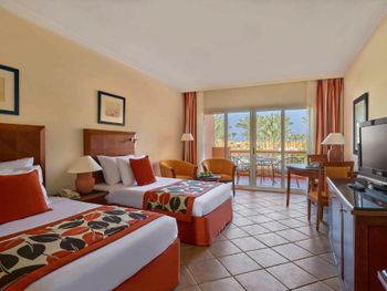 Обслуживание и персонал, везде пытаются «выдоить» из тебя деньги (хотя всё включено!), официанты в главном ресторане хорошо обращаются, только когда оставляешь чаевые, а так один даже не хотел поменять столовые приборы по нашей просьбе (весной были в «Ренессансе» в Шарм-эль-Шейхе - обслуживание великолепное), уборщик номера подходит и каждый день спрашивает, хорошо ли он убрал номер, с намеком на чаевые, если он нас не видел днём, то заходит в номер вечером, якобы что-то доносит. Один день не было электричества, кондиционер в номере не работал, от управляющих отелем мы не получили ни извинений, ни объяснений. В номере в коридоре не работал свет, застой воды в умывальнике. Вай-Фай есть только на ресепшене, и то очень медленный Интернет. Купили пакет Интернета в магазине при отеле, нас обманули, оплатили 2,5Гб, а получили 800Мб. Кстати, в аэропорту Марса-Алам было тоже самое! Брали маску на прокат в дайвинг-центре на пляже, у него не было сдачи, сказал подойти на следующий день, так мы ходили просили сдачу 3 дня! Наверное, с расчётом, что мы уедем и забудем. 3 дня был шторм, купаться в море было невозможно, возле бассейна тебя просят купить какие-то услуги... Одним словом, возвращаться в данный отель нет желания.