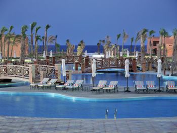 После насыщенного дня гости могут заказать бокал любимого напитка и отдохнуть у бассейна под лучами египетского солнца.