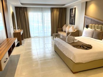 Номер: 48 кв.м., однокомнатный номер с двуспальной кроватью (размером 180 см х 200 см) или двумя односпальными кроватями (размером 120 см х 200 см), ванная комната, балкон или терраса, вид на море