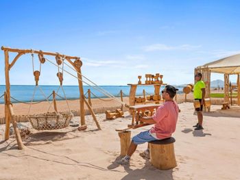 Нас избили у бассейна ,египтянин .За то что я попросила его спутницу немного отойти так как я фотографировала своего ребёнка .Вскоре он пришёл и начал говорить Fack you и плевать ,далее выбросил мой телефон IPHONE 12 pro max в бассейн и продолжил дальше орать !Персонал не среагировал даже на эту ситуацию !!!!