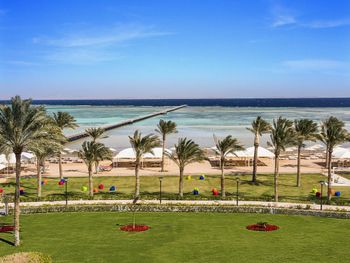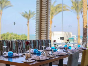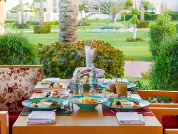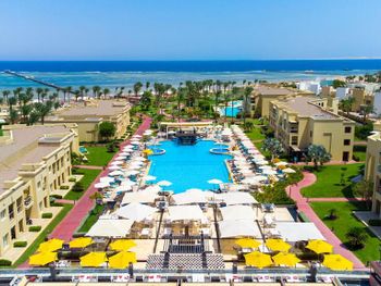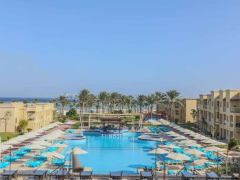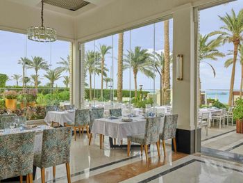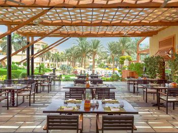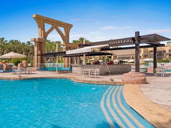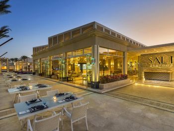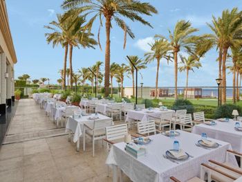 В отеле рекламируют рестораны «а-ля карт», в которые невозможно записаться. Мы попали в один, и там еда из шведского стола, но по меню)))) До этого не был на Египетских курортах, скажу что Красное море не стоит этого всего! Из плюсов - кондиционер в номере, спасибо!