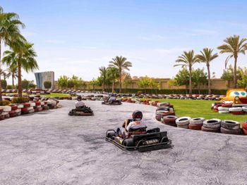 Большая территория, перемещение на электрокарах, возможность посещение отеля в котором проживают только взрослые.