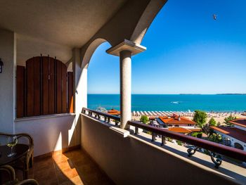 Отличный отель, очень близко к пляжу. Большой, удобный балкон, восхитительный вид на море с балкона. Хорошая звукоизоляция в номерах. Тихо на территории отеля. Вкусная еда в рыбном ресторане.