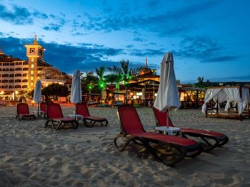1.1. Лежаки за деньги занимают специальные люди (пляжные служащие), кладут на них отельные полотенца и они могут пролежать до самой ночи не занятые (в подтверждение сделали с мужем фото, смотрите ниже, время 21.30, а полотенца лежат с 8 утра, не тронутые).
