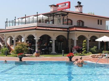 1). Отель пишет, что у них в стоимость входят бесплатные лежаки на пляже. Да, но «по большой лотереи» для каждого пятого гостя… Номеров и гостей отеле (даже при неполной заполняемости) 360, лежаков на пляже 64 (справа и слева от главного входа) - они белого цвета. Но есть еще и платные (оранжевого цвета)- они свободны всегда, принадлежат отелю, но если тебе не хватило бесплатных, тебе предложат заплатить 24 лева за платные. «Философия идеального отдыха…по-болгарски». Почему так происходит: