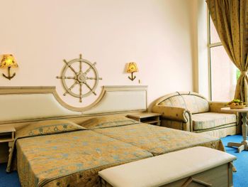 Начну с отеля,красивый,немного стар и не помешало ремонта,но жить в нем можно.Комнаты чистыие.В номера убирали и каждый день выносили мусор,но мы особо и не муссорили .Белье нам не поменяли,но полотенца два раза за 7 дней поменяли.Так как мы непривиредливыйе нас устраивало,ведь в комнате мы только вечером бывали,остаток дня проводили на пляже..В Вода в море тёплое и очень чистое.Бассейн тоже чистегький,вода немного прохладная.Аквопарк тоже красивый и хороший но работает только часть.По вечерам в Амфитятре есть спектакли,некоторыие из них платные.Еда вкусная,есть что кушать.