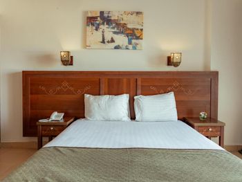 Перед поездкой читали много негативных отзывов про отели Египта. Исходя из них, данный отель очень даже хорошее соотношение цена/качество. Достаточно чистый сам отель, его территория, номера. Да, мебель старая, но ничего не отваливалось, не протекало, всё работало. Всегда была горячая вода в душе. Каждый день предлагали уборку номера (денег не клянчили). Каждый день давали по 0,5 бутылки воды на каждого. Разнообразие и качество еды в столовой, вещь субъективная, но нам многое нравилось, голодными точно не будете. Каждый день хоть одно блюдо, но было новое. Наличие кофемашины, лично для меня, жирный плюс. Приятно были удивлены бассейном с подогревом (в декабре актуально). Лежаков на всех не хватает, но они есть, с матрасами и навесами. Про качество интернета не скажу - купили по прилету в аэропорту симку Оранж за 9$, и проблем с интернетом не знали.