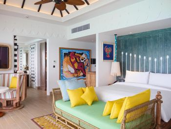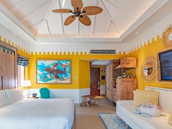Все номера и виллы отеля оснащены телевизором с плоским экраном и спутниковыми каналами и мини-баром. В числе удобств принадлежности для чая/кофе, фирменный набор закусок, постельное белье из ткани плотностью 300 нитей и удобные подушки Creature Comfort. Собственные ванные комнаты укомплектованы индивидуально подобранными натуральными туалетно-косметическими принадлежностями.