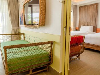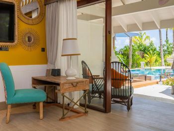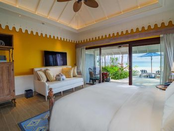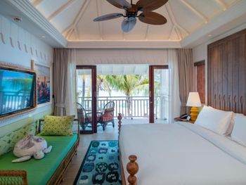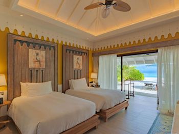 Близкое расположение от аэропорта, встретили и проводили к катеру, все быстро, персонал приветливый, во всем помогал. Комната большая, с прямым выходом к пляжу, большая удобная кровать, белоснежная постель, наличие бокалов, стаканов, ставят 3-4 бутылки воды в день. Так же понравилось наличие 2 раковин в ванной, полотенца меняли 2 раза в день и уборка тоже дважды. Была предоставлена сушилка для белья по нашему запросу. Очень понравились завтраки, разнообразные и вкусные, большая и красивая территория отеля, понравилось наличие магазинов и банкоматов, багги по запросу. Вкусная еда во всех ресторанах, 2 бассейна