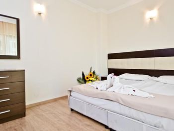 Святой Влас - это место на Черноморском побережье Болгарии с особой атмосферой и отдыхать там всегда хочется. Отель имеет хорошее расположение. Буквально в 5-7 минутах ходьбы находятся магазинчики и море, на которое прям хочется прогуляться вдоль красиво ухоженных роз, лаванды, туй. Мы попросили ранее заселение и в отеле нам его разрешили. С 11 часов мы заселились в уютный, теплый, чистый и удобный номер с видом на море и через 15 минут начали отдыхать. На территории приятно и в меру зелено. Большой, чистый бассейн. Низкие диванчики с мягкими подушками на открытой террасе располагают к тому, чтобы выпить любимый напиток вечером, подышать морским воздухом и насладится красивым видом на море и город. В ресторане готовят вкусно. Преобладают блюда болгарской и европейской кухни. Много фруктов. Выпечка на любой вкус. Персонал очень приветливый и организованный. Каждый знает, чем должен заниматься и четко выполняет свои обязанности. Мы прекрасно провели время. Отдых превзошел ожидания после прочтения отзывов на этом сайте. Отель выше 3-х звезд, что видно невооруженным глазом. Обязательно хотелось бы вернуться туда снова.