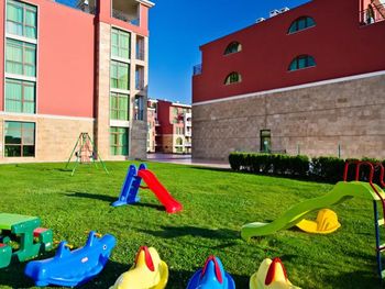 The bus stops are a 2-minute walk away, and the center of Sveti Vlas is a 10-minute walk away. Sunny Beach is 4 km away, and the beautiful ancient city of Nessebar is 10 minutes away by car. Aquapark "Action" is 4,5 km away, and the nearest airport is Burgas, located 34 km away.