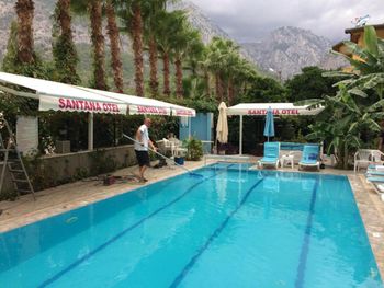 Отель Santana Ездила с родителями, сестрой и племянником 10.06.2024 Начиталась плохих отзывов, но все равно решили поехать Не знаю, почему люди писали плохие отзывы, нам все понравилось, в отеле сделали ремонт, номера хорошие, убирают каждый день , мы жили на третьем этаже, вид очень красивый на горы Бассейн тоже хороший, большой , всем хватает места, мы там почти всегда были одни ) все на море и вы можете полежать возле бассейна У отеля есть свой пляж, места всем хватает, на входе в море постелили мешки с песком и вход в море без камней , но если вам не хватит места на пляже от отеля , вы можете пойти на друге место и вас не выгонят, мы ходили на другой пляж там почти все места свободные. Так же если пройти 25 минут пешком , вы попадете на дикий пляж ( очень красивый ) Кормят вкусно, каждый день что-то новое, из мяса курица, говядина , очень вкусная, овощи, фрукты, салаты, вкусное белое вино Хороший персонал, приятные парни) особенно Берк, Жан, Лотиф Владелец тоже очень хороший За такую дешевую цену , все очень хорошо По вечерам веселая дискотека, играют хиты, так же вы можете поставить свою музыку , где-то до 12 ночи, потом все тихо и ничего не мешает спать В общем все понравилось