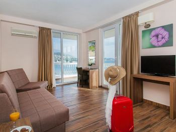 Отдыхали с 20 по 28 июня. Море отличное! На улице уже жарко. Вечером очень хорошо. Нам с погодой повезло застали один день с утра дождь. У отеля есть свой пляж, чистый аккуратный.В июне всем мест хватало. Зонт,лежак, полотенца всё предоставляют на пляже. Номер убирают не очень хорошо. Полы точно не убирают. Полотенца меняют. Брали только завтрак, он стандартный европейский. Номер брали с видом на море. Единственное я запрашивала 1 номер с 2 кроватями, в итоге я спала на диване... Местоположение - это правда про шум с улицы. Я даже не знаю, что там будет в июле и августе. Выход - это закрывать балкон, кондиционер в номере один. Комнаты было две. Еще вентилятор включали. Но много кафешек, аптеки, сувениры, надувные круги, купальники, шлепки, продукты всё под боком. Брали напрокат машину, ездили в Бар и Будву. В Будве очень много русских. И в принципе там всех очень много и чуть дороже. Бар спокойнее, скромнее, экономнее, на тот момент малолюдно. Сутоморе посередине между ними, небольшой посёлок/городок. В плане экскурсий обычно от Сутоморе на минивене довозят до Будвы, а от туда уже на большом автобусе, к примеру до Котора. Обратно так же в связи с удаленностью. Про язык - сначала разговаривали на английском, как могли изъяснялись, потом стали замечать, что много кто разговаривает на русском как гости, так и персонал в отеле и в кафешках где лучше, где хуже. В отеле есть одна девушка, которая говорит по-русски.