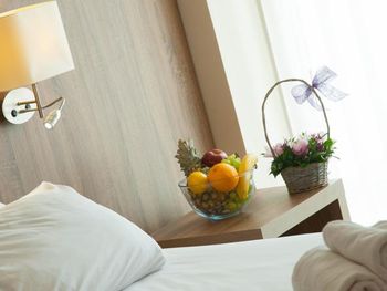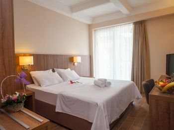 Нам повысили категорию номера со стандартного до люкса с видом на море. Принесли в номер комплимент. В номере имелись тапочки и халаты. Чистая и удобная постель. Полотенца и косметические принадлежности. Большой балкон на котором было приятно проводить время за книгой или кружкой кофе.