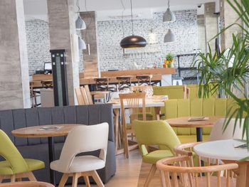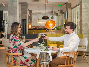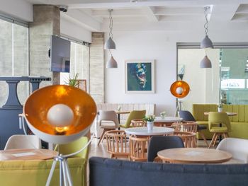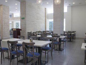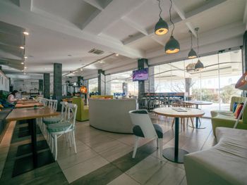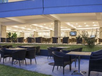 The bright lobby area offers comfortable armchairs and the reception is open 24 hours a day. A garden with a common terrace is available for the guests to lounge in.