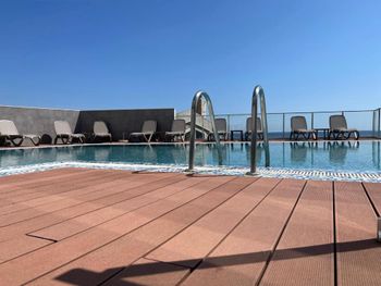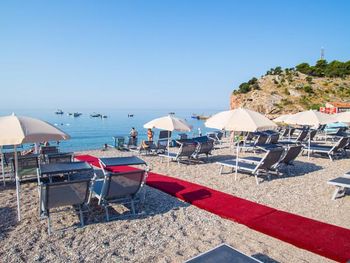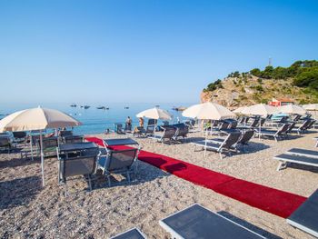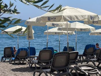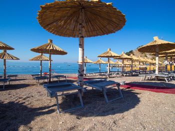 На один номер, не зависимо от типа номера, будь то стандарт или люкс, вам положено один пляжный комплект, т.е. два топчана, два полотенца и один зонтик, если вы с семьёй будьте готовы доплатить 25€.
