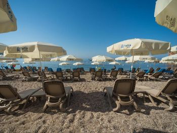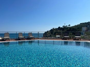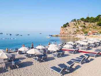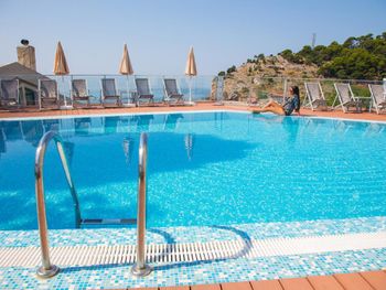 Отель расположен рядом с пляжем. Пляж только для гостей отеля, за этим следят, всегда были свободные места. Море спокойное, чистое, только при волнении прибивает немного водорослей. Рядом много кафе и ресторанчиков.