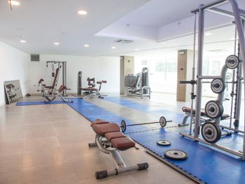 Шумно вечером. Тренажерный зал какой-то разбитый.