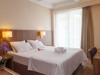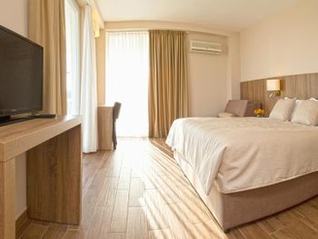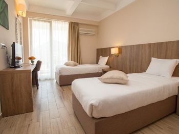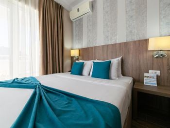 Первая неприятность - списали полностью деньги с карты за два дня до поездки. Хотя на сайте указано, что оплата возможна на месте. Возврат на карту требовал предоставления всех банковских реквизитов. Ладно, списали так списали. Вторая неприятность - пляж не был готов вообще!!! Не было ни зонтов, ни шезлонгов. Душ не работал Готовили все это в процессе отдыха - к 15.06 готово было все, но наше пребывание в отеле подходило к концу. В ванной нет пластиковых стаканов для щеток. Только стеклянные. Был разбит один стакан - списали 5 евро!!! Видимо стакан был из богемского хрусталя :-))). При заезде сразу оплатили обратный трансфер, но девочка на ресепшен перепутала время! В итоге, в аэропорт нас вез менеджер отеля, хорошо что был на месте!!! Уборка номера оставляет желать лучшего - то бумагу забывали положить, то полотенце для ног в ванной. В ванной нет дозированных бутылочек с шампунем и гелем. Висит дозатор, как в общественном туалете - 3 в 1, мыло, гель, шампунь. Нет шапочек для душа. Но это уже мелочи :-) Для тех кто чутко спит - отель то рядом с морем, НО с другой стороны ЖД дорога и автодорога. Плюс дискотека под окнами. Спать с работающим кондиционер невозможно - висит над кроватью, а при открытом балконе шум!!! Рекомендую взять беруши. Отель явно не тянет на 4****.
