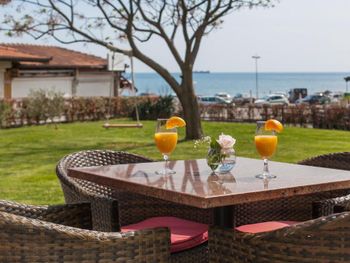 Завтрак простоват,но голодными не останетесь. Не предупредили,что выезд в 10:00. Мы же привыкшие,что выезд в 12:00,как обычно,а тут фигушки. 20 евро пришлите, будьте так любезны. Паркинг тоже платный - 7 евро. Об этом тоже не сказали. Итого при выезде -40 евро (включая курортный сбор). Хотя,если бы все озвучили,то и осадочка бы не осталось,а так не приятно((Мыло и гель для душа отсутствовали,но дозаторы висят для них. Самый ОГРОМНЫЙ плюс - море в 2х шагах от отеля!!!!Не 5 минут,а именно в 2х шагах. Этот плюс перевешивает все минусы))