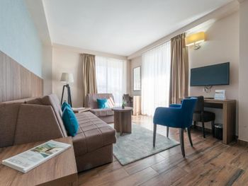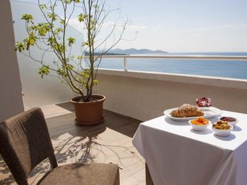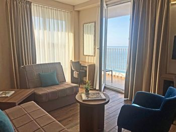 Красивый вид с балкона на море. Чистый и уютный номер. Отличный спа-комплекс. И что больше всего порадовало - это бассейн на открытом воздухе с подогревом. Думали, что в марте бассейн не работает. Завтрак был вкусный в ресторане. Очень вежливый персонал