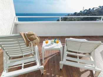 2) Номена "с видом на море" - обман. Море видно справа, но основной вид на шоссе, причем довольно шумное. Попросив персонал переселить меня, в ответ получила, что это не обман, море видно справа, а от шума шоссе можно закрыть балкон. А за номер с реальным видом на море надо доплачивать 50 евро за сутки, потому что он двухкомнатный. В двухкомнатных номерах действительно вид на море, но нижнюю часть этого пейзажа занимает парковка. В ситуации разобрались сотрудники Букинга, я написала письмо с возмущением, приложив видео и фото моего чудесного "морского" вида. После пинка от Букинга, сотрудники отеля переселили меня в двухкомнатный номер без доплаты. Но это случилось в последний день моего пребывания в отеле.
