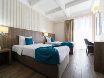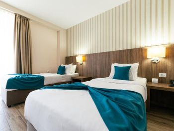 Музыка на этажах и в холле может быть немного тише, тк в номерах ее ночью слышно фоном. Все немного уставшее (стены, мебель), не ожидайте уровня 4*, но все чистое и старается поддерживаться в порядке. Мы были в низкий сезон и шведского стола на завтрак не было, это не было проблемой, нас покормили по меню, но стоимость напитков не была включена. К сожалению, об этом не было информации и это оказалось неприятным сюрпризом. Просто надо иметь ввиду, что напитки за дополнительную плату.