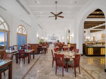 О питании писать даже как-то стыдно. И дело не в том, что мы были голодными ( думаю, никто не едет в отель, чтобы именно есть), но нельзя же пятизвездочному отелю ТАК позориться с едой! Во-первых, ее просто нет ( тот, кто хоть раз отдыхал в отеле олинклюзив, меня поймет), во-вторых, то, что есть, дико невкусно. Причем не удалось даже остановиться на чем-то одном, типа " я буду есть только макароны" - даже макароны невкусные. Нашли относительный выход, питаясь в ресторанах а ля карт. Это можно делать хоть каждый день. В этих ресторанах тоже не очень вкусно, но ты хотя бы видишь, что заказываешь, и проводишь вечер в приятном месте ( основной ресторан отеля очень похож на дешевую столовую). Вообще все это совсем не похоже на то, что я читала о питании в отеле, и на те видео, который видела. Наверное, дело в проблемах этого года. Но все равно очень неприятно. Тем, кто сейчас соберется ехать в этот отель, я бы порекомендовала или брать только завтрак, или доплачивать за программу А, которая предполагает питание и на площади Сохо. Но букинг эту программу не предлагает.